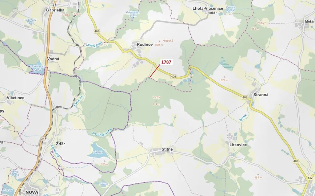 Lesní pozemek o výměře 288 m2, parcelní číslo 1787, podíl 1/1, katastrální území Štítné, obec Žirovnice, obec s rozšířenou působností Pelhřimov, okres Pelhřimov, Kraj Vysočina.
