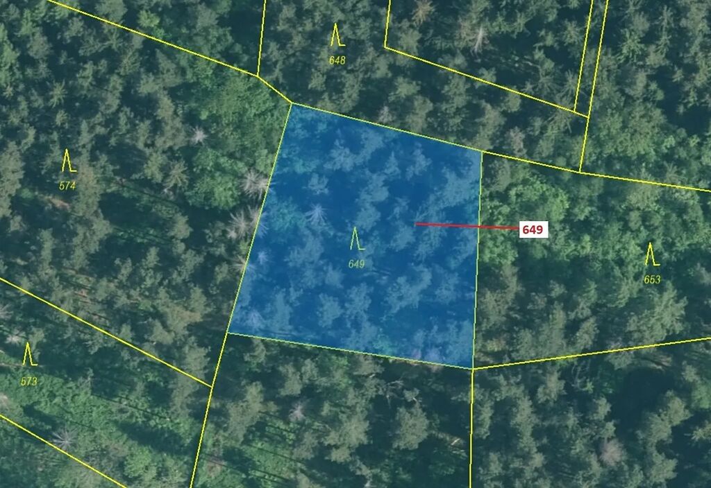 Lesní pozemek o výměře 1722 m2, parcelní číslo 649, podíl 1/1, katastrální území Kuřimany, obec Kuřimany, obec s rozšířenou působností Strakonice, okres Strakonice, Jihočeský kraj. Po těžbě.