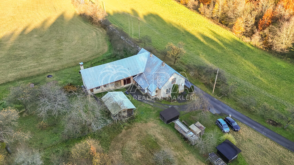 Původní stavba z roku 1935 byla v roce 1977 částečně rozšířena a dnes nabízí užitnou plochu přibližně 226 m², z toho obytná část tvoří 126 m². Dispozice 4+1 je doplněna o hospodářské prostory, garáž, dílnu, dřevník a rozsáhlou půdu, která přímo vybízí k dalšímu využití.