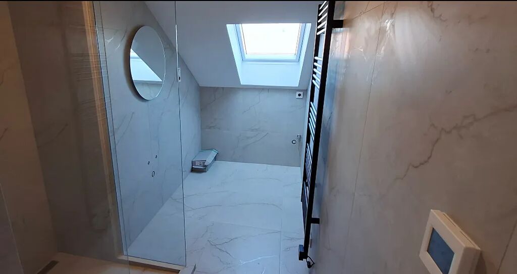 - nová koupelna se sprchovým koutem nachystána na pračku i sušičku a