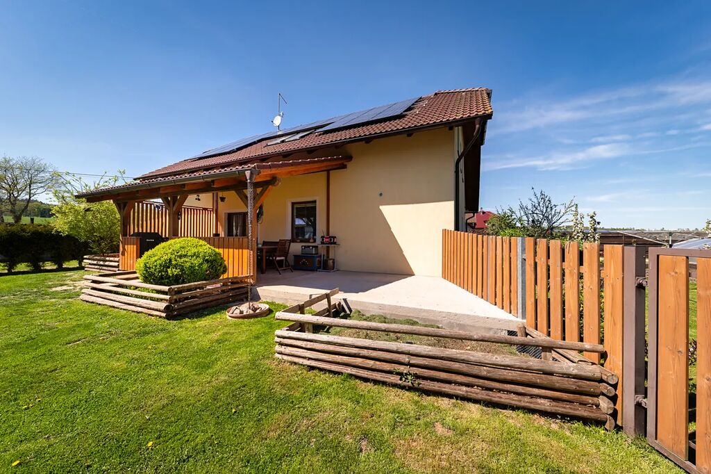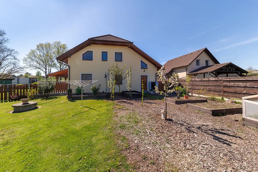 Dům nabízí dostatek prostoru pro pohodlné bydlení aktivní rodině. Tatínek má k dispozici dostatečné parkování, garáž a kotelnu. Maminka určitě ocení pohled z kuchyně na zeleninovou a ovocnou zahradu, kde si může pěstovat bylinky. Pro celou rodinu bude atraktivní a plně využívaná pergola, přístupná z obývacího pokoje a skrytý odpočinkový kout s udírnou.