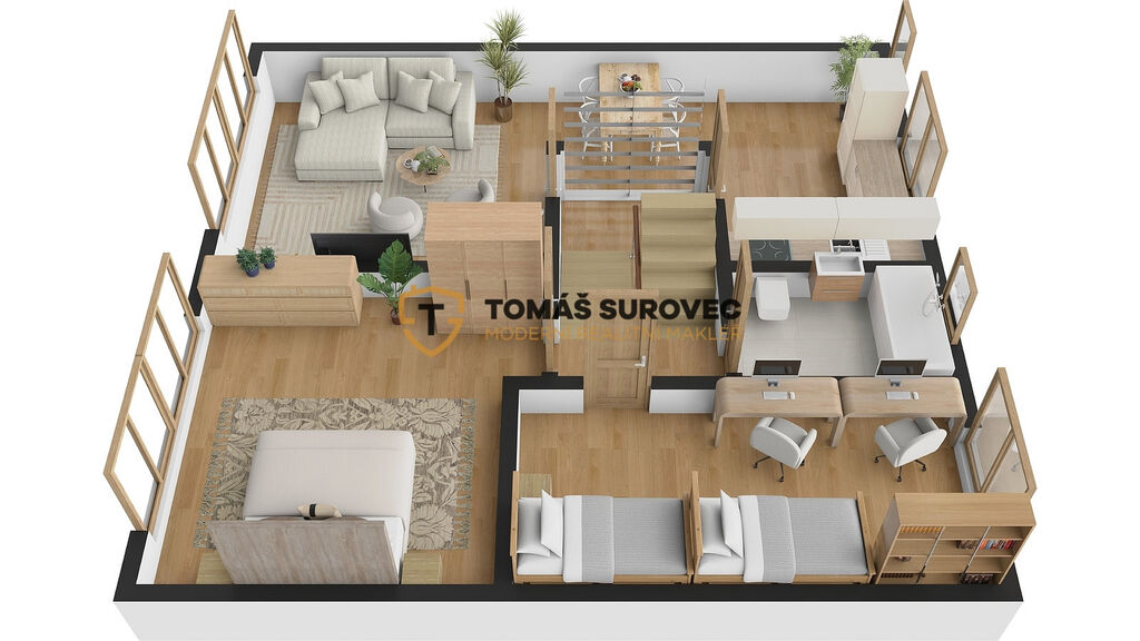 Dům, který nabízí víc než jen bydlení. Ve Slavičíně na adrese Dlouhá 646 na vás čeká dvougenerační rodinný dům se dvěma samostatnými bytovými jednotkami, ideální jak pro rodinné bydlení, tak i pro podnikání nebo investici. V přízemí najdete útulné 1+1 po rekonstrukci – kuchyňský kout, obývací pokoj s krbem s krbovou vložkou, která tvoří příjemný doplněk k vytápění, koupelnu se sprchovým koutem a přímý vstup na zahradu. Terasa s posezením a pergolou poskytuje příjemné soukromí. V horních patrech se nachází prostorný mezonetový byt 5+1 rozdělený do dvou pater a mezipatra. Byt má novou kuchyňskou linku, renovované parkety a koupelnu s masážní vanou. V podkroví je zrekonstruovaná ložnice s nádherným výhledem. Dům má také garáž, dílnu, sklep a možnost parkování dvou aut před domem. Okna jsou v celém domě trojskla, střecha byla rekonstruována kolem roku 2010 a je osazena solárními panely pro ohřev vody, což výrazně snižuje provozní náklady. Vytápění celého domu je řešeno plynovým kotlem a ústředním topením s radiátory, které jsou i v menší jednotce. Dům se nachází v klidné lokalitě s výbornou dostupností – škola, školka i obchody jsou v docházkové vzdálenosti. Ideální volba pro ty, kteří hledají prostorný a univerzální dům v příjemné lokalitě.