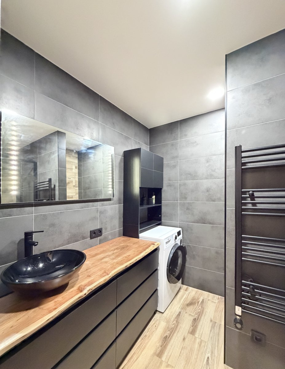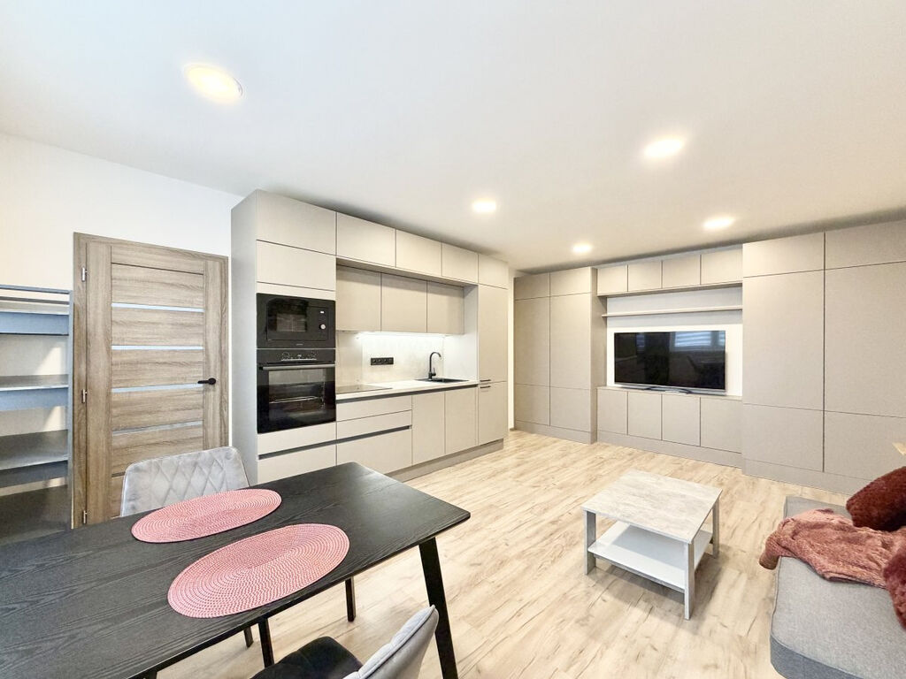 Byt se nabízí plně vybavený. Kuchyně disponuje lednicí, myčkou, elektrickou troubou, varnou deskou, mikrovlnnou troubou a digestoří. Obývací část je zařízena pohovkou, konferenčním stolem, jídelním stolem a židlemi. Dále se v místnosti nachází velká vestavěná skříň, kde je spousta úložného prostoru. Součástí ložnice je postel a věšák. V koupelně je sprchový kout, umyvadlo, toaleta, topný žebříček a pračka se sušičkou.