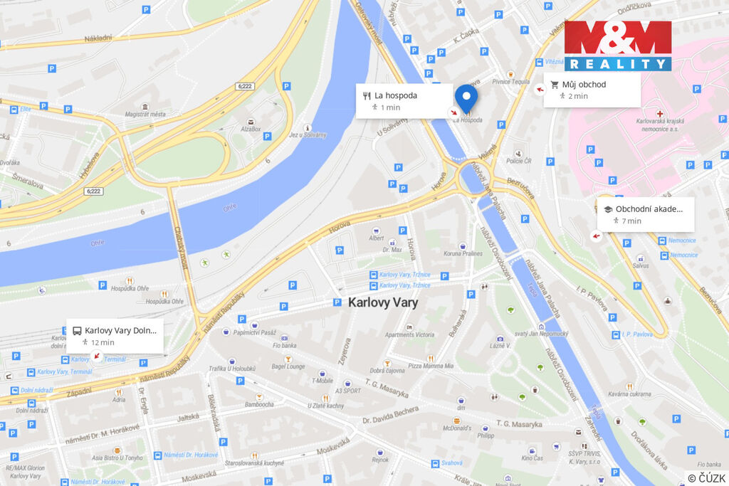 Lokalita nábřeží Jana Palacha patří mezi vyhledávané části Karlových Varů – v pěší dostupnosti je veškerá občanská vybavenost, lázeňské centrum, školy, obchody i zastávky MHD.