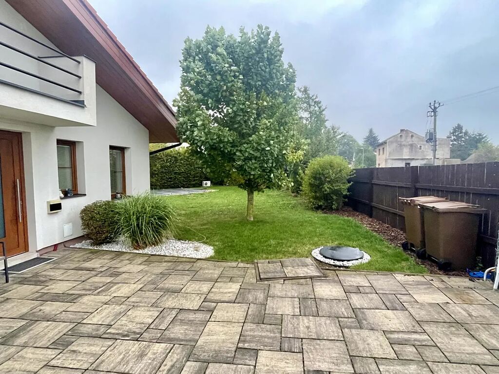 Nabízíme k prodeji moderní rodinný dům v malebné obci Drahelčice cca 10 minut od Prahy (metro Zličín). Dům byl postaven před cca 15 lety na velkorysém pozemku v klidné části obce. Kromě pěkné udržované zahrady s bazénem a terasou disponuje dostatečným počtem parkovacích míst (garáž a zpevněné plochy na pozemku), a to i pro větší vozy. V přízemí domu se nachází velkorysý obývací prostor s východem na terasu, luxusní kuchyně s jídelnou, ložnice, koupelna, technická místnost a garáž s průchodem do vstupní haly domu. V patře jsou dvě samostatné ložnice, dvě koupelny, dvě šatny a půdní prostor přebudovaný na úložný prostor. Celý dům působí velmi příjemným a útulným dojmem. Topení zabezpečuje kondenzační plynový kotel, kdy v přízemí je kombinace podlahového topení a radiátorů, v patře jsou radiátory. Dům má zabezpečovací zařízení. Obec Drahelčice je příjemné bydlení pro rodiny s dětmi, v obci je škola i školka, okolí vybízí k procházkám a sportování.