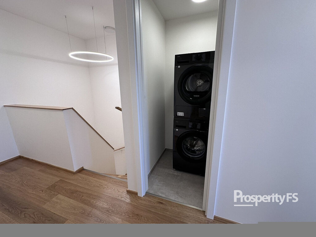 V prvním podlaží bytu se nachází prostorný obývací pokoj propojený s kuchyní, který má přístup na slunnou terasu, dále stylová ložnice s balkonem, koupelna se sprchovým koutem a toaletou, praktická šatna/komora a vstupní chodba. Druhé podlaží nabízí dvě další světlé ložnice, druhou koupelnu s vanou a toaletou, šatnu a samostatnou místnost s pračkou a sušičkou.