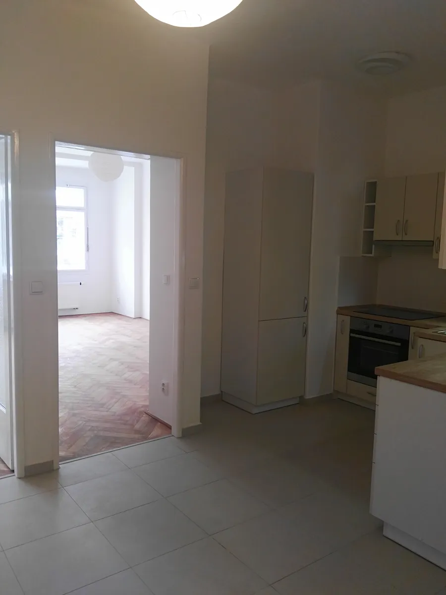 Nabízíme na pronájem krásný, klidný, světlý, nezařízený byt 2+kk, cca 57 m2, Petrohradská ulice, Praha 10, Vršovice. Byt se nachází v pátém podlaží cihlového domu s výtahem. Byt má dva samostatné, neprůchozí pokoje s okny orientovanými na východ. Kuchyně s halou ( 13,41 ) je vybavena kuchyňskou linkou s digestoří a elektrickým sporákem, myčkou a lednicí. Dále je v bytě praktická komora s plynovým kotlem a místem pro pračku. Na podlahách jsou parkety a dlažba. Tepou vodu vytápění zajišťuje plynový kotel. Byt bude připravený k nastěhování od 1. ledna. Jsou použita fota z jiného bytu ve stejném domě, protože v nabízeném bytě bude nová kuchyně, budou se brousit parkety, malovat a v koupelně bude nový sprchový kout. V okolí je veškerá občanská vybavenost, park Grébovka, výborná dostupnost do centra.