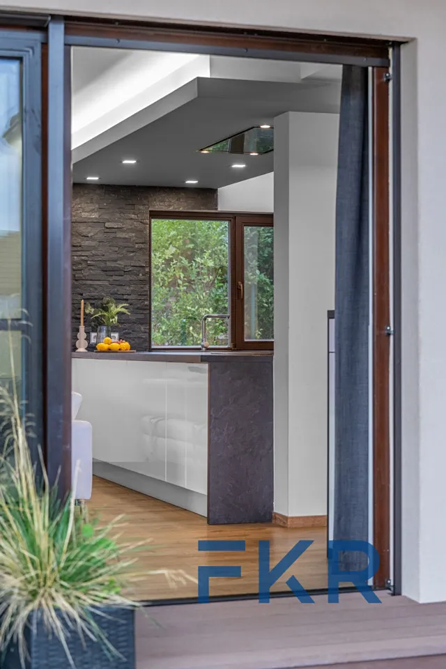 K pocitu pohodlí přispívá podlahové vytápění s možností nastavení jednotlivých zón, předokenní žaluzie s teplotním čidlem a variabilním nastavením, nabíječka pro elektromobil, kompletní zabezpečovací systém i vzdálený přístup k domu. Dům s energetickou náročností třídy B je vybaven tepelným čerpadlem (voda–vzduch) a fotovoltaickými panely s kapacitou úložiště 25 kWh. V podkroví najdete velkorysý úložný prostor, který ocení každá domácnost.