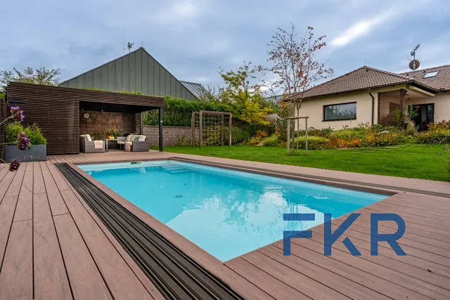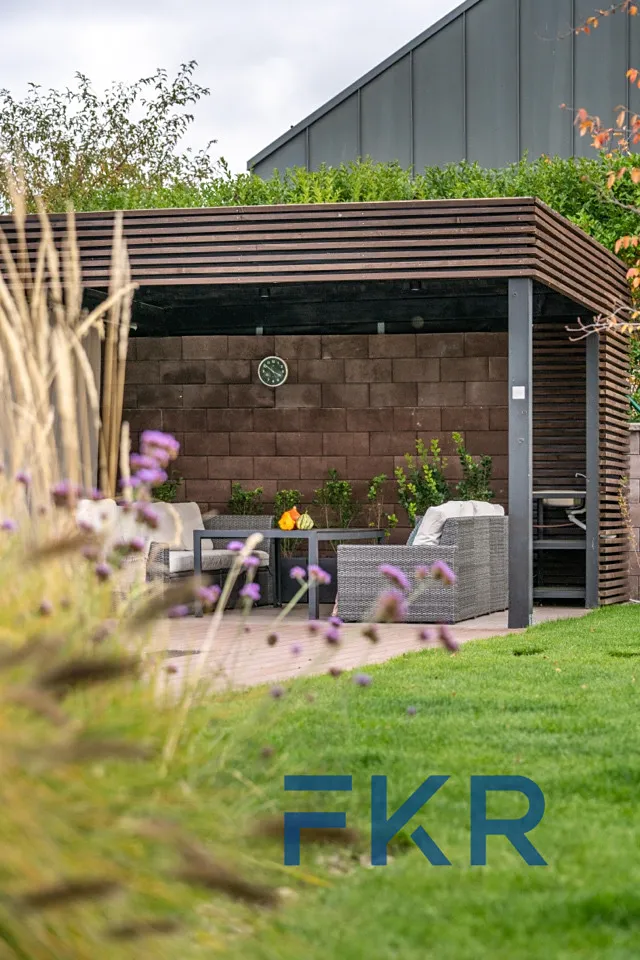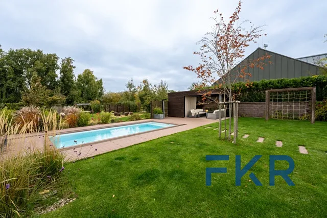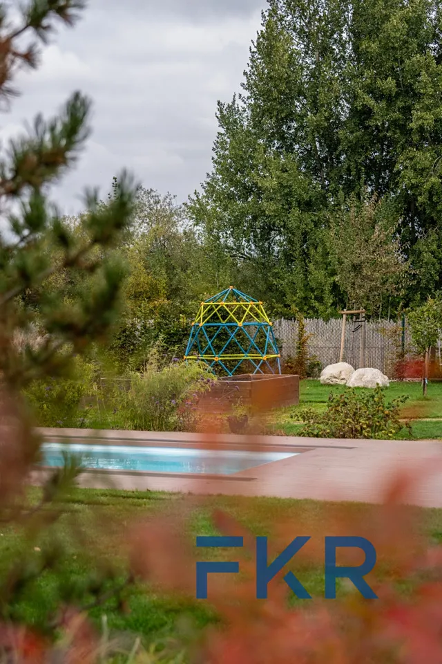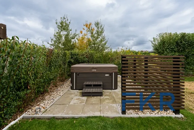 Zahrada je malým světem sama pro sebe – nabízí bazén se slanou vodou, prostornou pergolu pro grilování s přáteli, luxusní vířivku v naprostém soukromí i prostor pro pěstování ve vyvýšených záhonech a odpočinek. Fantazii se zde meze skutečně nekladou.
