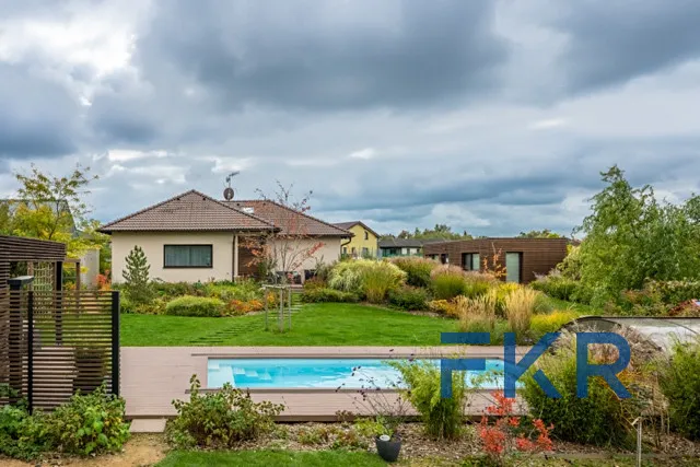 Pečlivě komponovaná zákoutí, nevšední výhledy a pocit klidu, který vás okamžitě odpojí od uspěchaného světa. Slova, která získají skutečný význam až při osobní prohlídce. Každý krok zahradou odhaluje novou scenérii, navozuje jedinečnou atmosféru a společně s domem vytváří harmonické místo pro život.