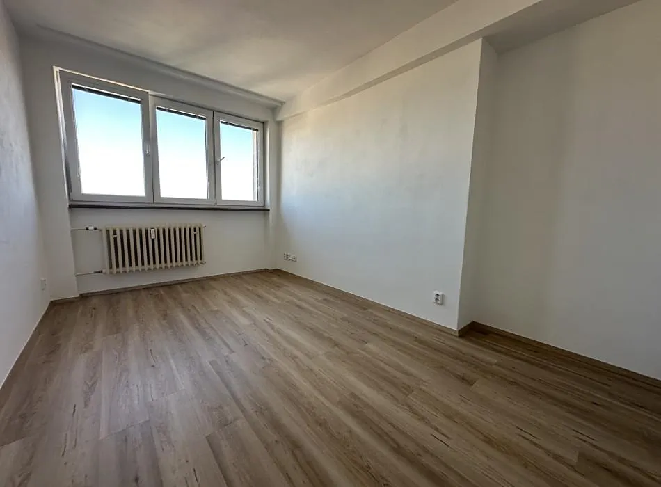 Slunný byt 3+1 po kompletní rekonstrukci, v devatenáctém patře s krásným výhledem na Prahu, Úplně nový ještě nikým nebydlený .Plastové okna ,kompletně zateplená budova ,podlahy vinylové a dlažba. Kuch. linka se sporákem vše nové . Koupelna s vanou a samostatné wc. Součástí bytu je i sklepní koje. MHD u domu. Jde o velice pěkné bydlení.