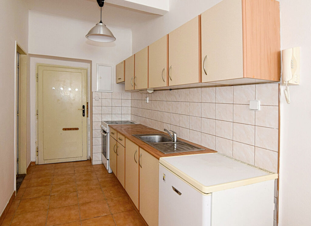 Disponuje prosvětlenou hlavní místností s kuchyňským koutem do tvaru L.