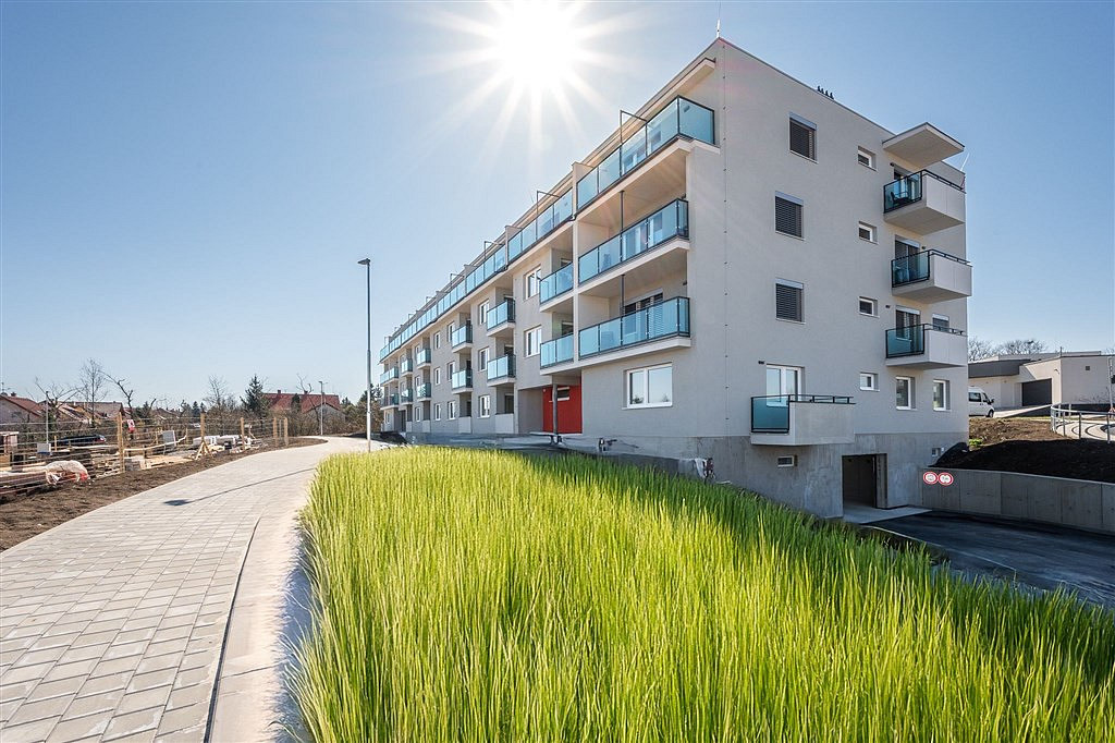 Skutečně pěkný a velkými okny prosvětlený byt, bude vybaven v pěkném standardu. Plynové kondenzační kotle umístěné v kotelně v suterénu domu nabízejí podlahové vytápění a v obou pokojích je rovněž klimatizační jednotka, která v létě chladí a v zimně může topit. Vstupní dveře s bezpečnostním kováním, vnitřní dveře s obložkovou zárubní. Plastová okna s izolačním trojsklem, plovoucí podlahy s vysokou odolností. Značkové vybavovací předměty v koupelně, velkoformátová keramická dlažba i obklady. Příprava na instalaci kuchyňské linky s digestoří (kuchyně není v ceně). Dekory a barevnost si můžete ve třech studiích doladit podle vašich představ. K bytu je možné zakoupit garážové stání v suterénu, nebo venkovní parkovací stání. Nízké provozní náklady na bydlení, a to jak díky jeho uspořádání, tak i díky použitým materiálům. Dům je zařazen v energetické třídě B, tedy velmi úsporný.