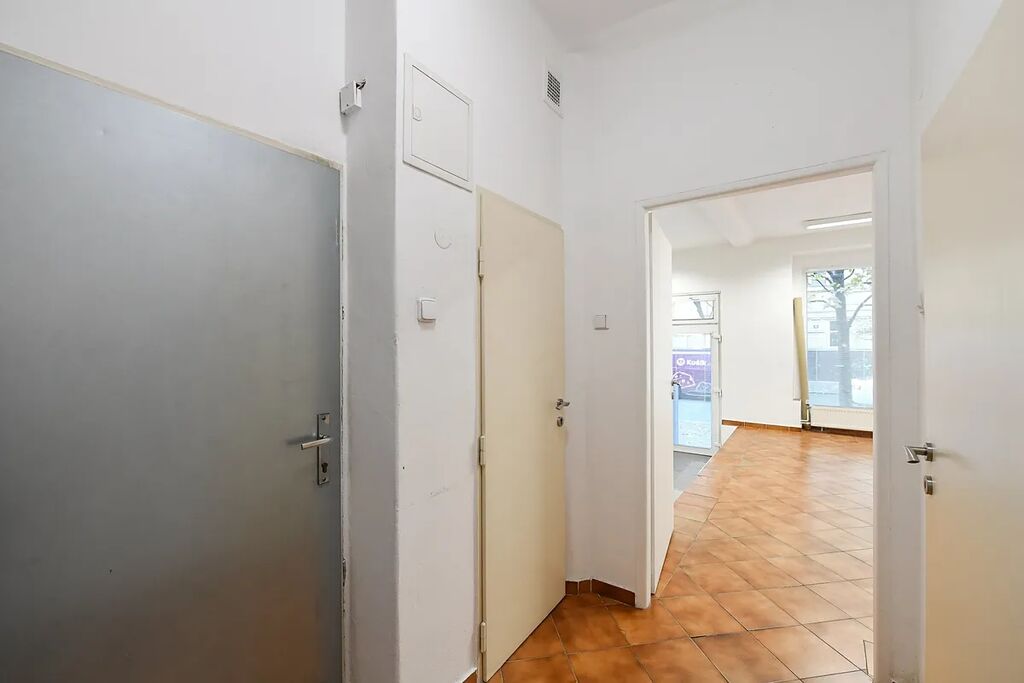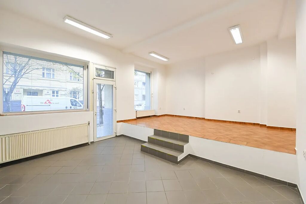 Prostor má výměru 50 m2 a sestává se z hlavní místnosti s okny do ulice (výloha do ulice), skládku, koupelny, chodby a druhého skládku.