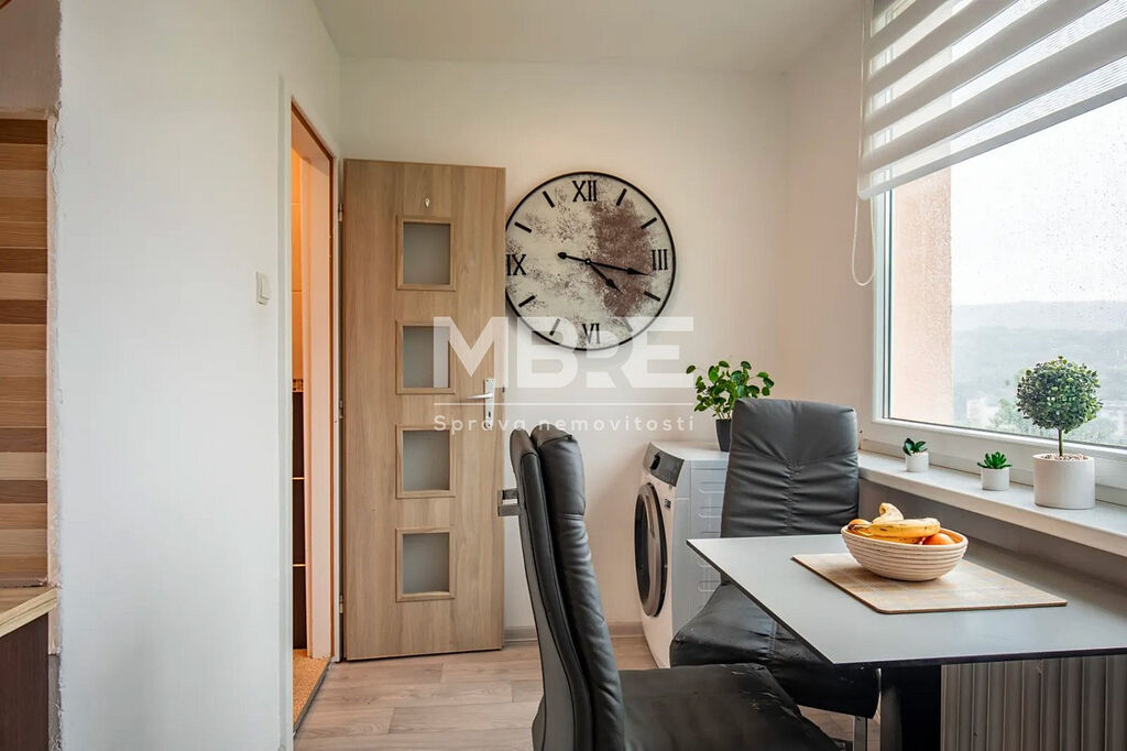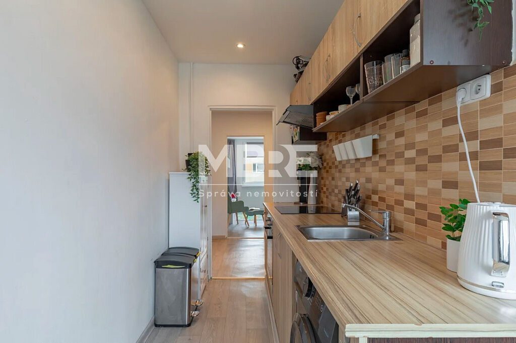 Bytová jednotka disponuje novou kuchyňskou linkou v designu světlé dřeviny se sklokeramickou varnou deskou a místem pro pračku, moderní koupelnou s rohovou vanou, obklady v béžovém tónu a LED osvětlením, prostornými pokoji laděné do světlých tónů a zasklenou lodžií, ideální pro relaxaci s kávou nebo knížkou.