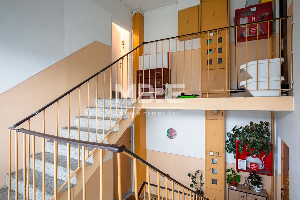 Parkování je bezproblémové – k dispozici je velké parkoviště přímo u domu, dostupné i zadním vchodem.