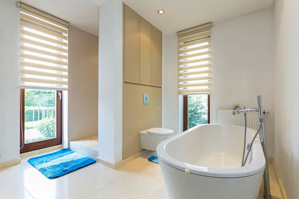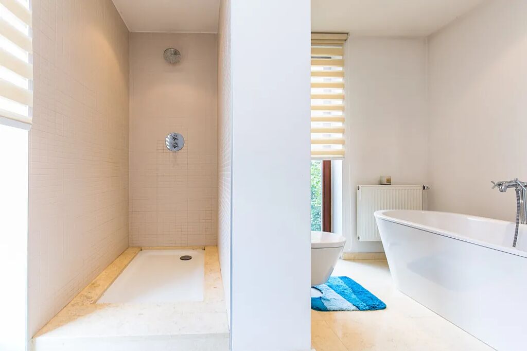 V patře se nacházejí tři ložnice a samostatná prostorná koupelna. Hlavní ložnice má navíc vlastní koupelnu se sprchovým koutem a toaletou. Ze dvou ložnic je přístup na balkon s výhledem do zahrady.