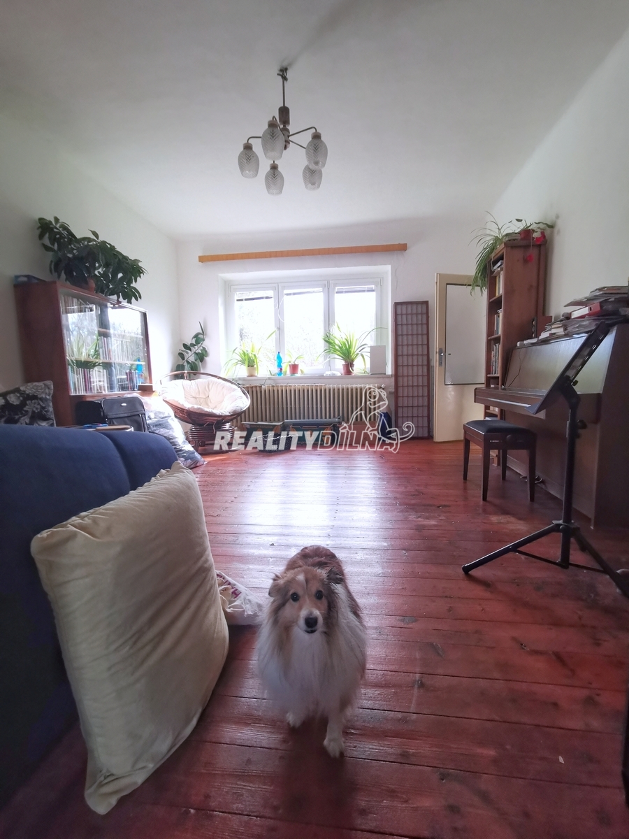 Dispozice: 3+1 (101 m²) + půda (25 m²) + sklep (10 m²) + zahradní altán (pracovna/kolárna = 13 m²) + oplocená zahrada a zastavěná plocha (465 m²).