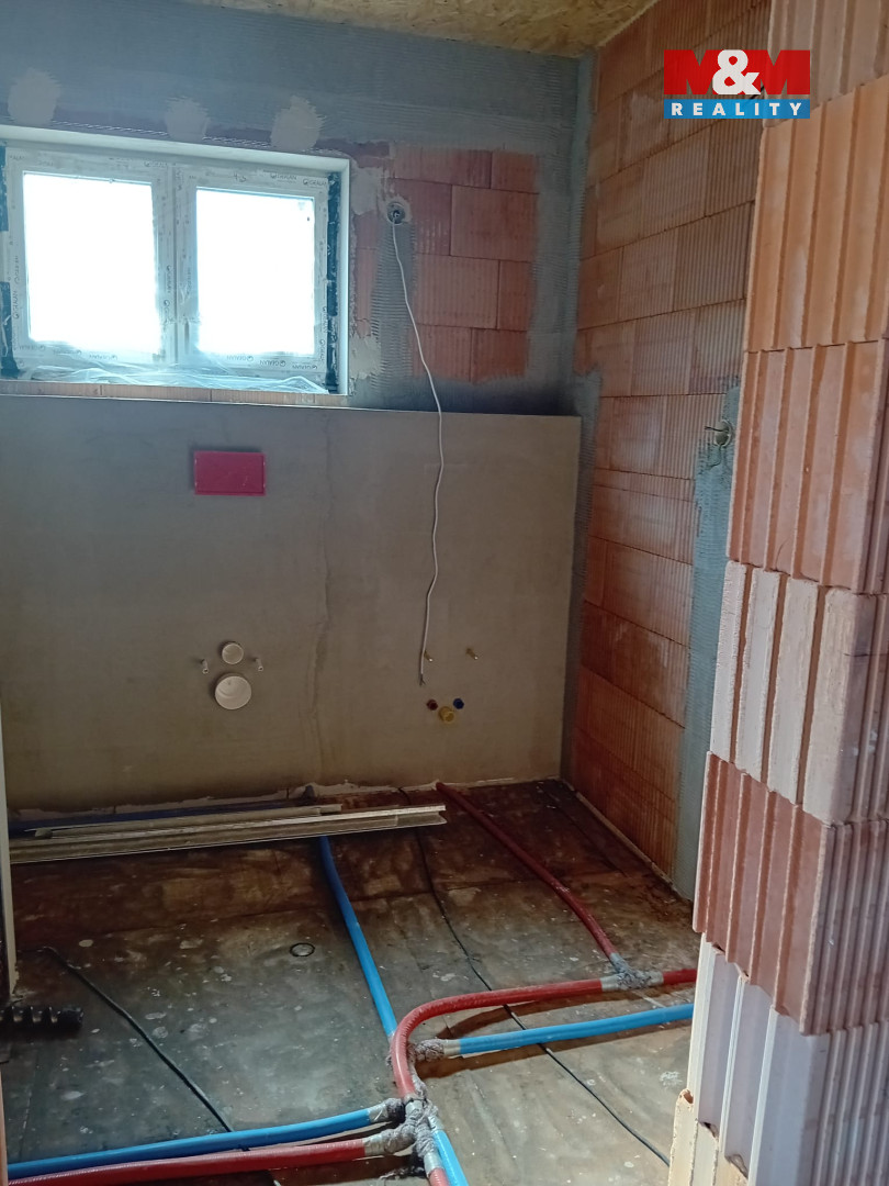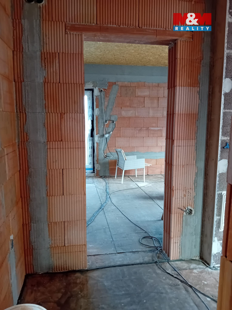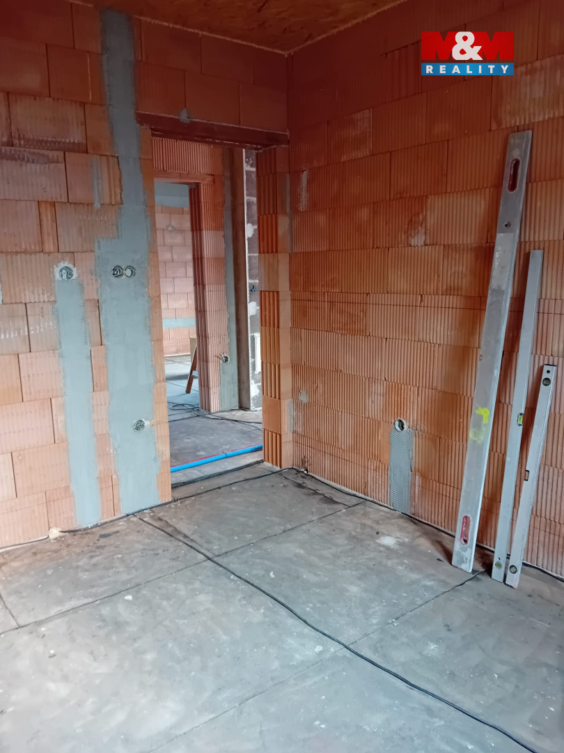 Na pozemku je nově postavená cihlová hrubá stavba rodinného domu 2kk.