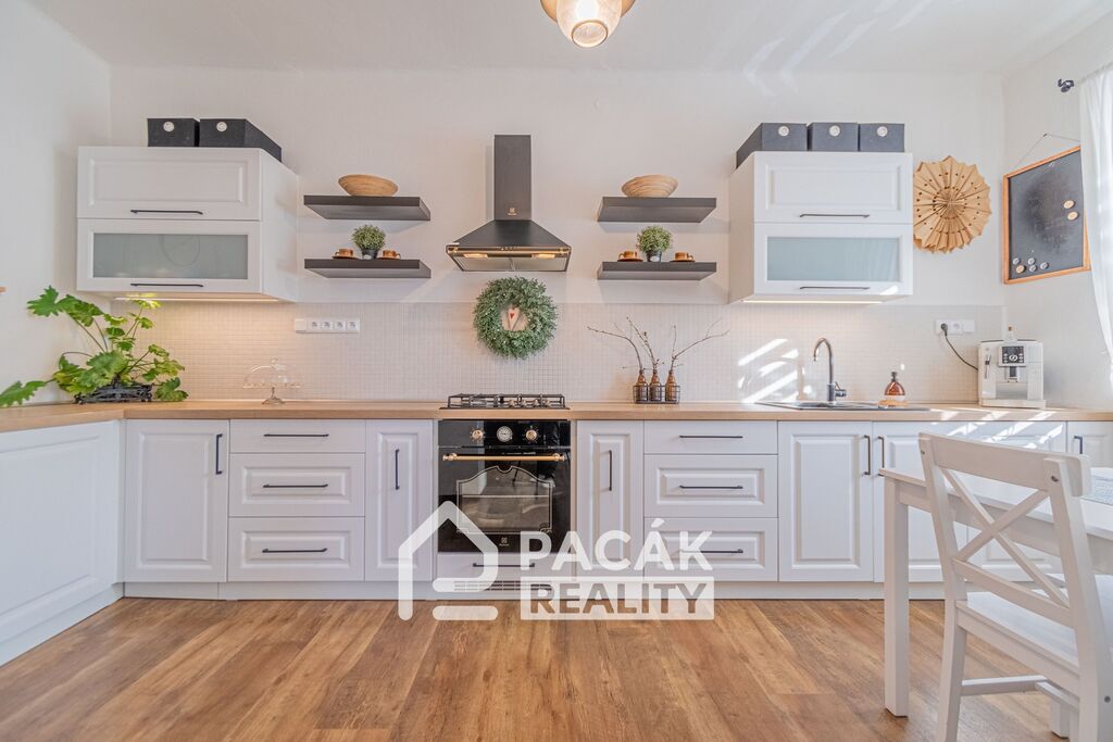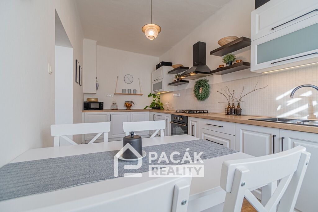 Nabízíme k prodeji ve výhradním zastoupení majitele rodinný dům v městysi Velký Újezd. Jedná se o dvoupodlažní zrekonstruovaný dům o dispozici 3+1 se stodolou, dvorem a navazující zahradou. Vstup do domu přes předsíň ze zahrady nebo z průjezdu mezi domy. Středem domu prochází prostorná hala, ze které se dostanete přes schodiště do druhého nadzemního podlaží. Současná dispozice nabízí v přízemí obývací pokoj moderně propojený s kuchyňským koutem. V přízemí prostorná komora, která je možná adaptovat na koupelnu s WC. V patře prostorná hala, 2x pokoj, koupelna a samostatné WC. Vytápění zánovním kondenzačním plynovým kotlem nebo krbem umístěným v přízemí s rozvodem tepla do ložnice v patře. Rodinný dům je moderně vybaven s designovými prvky a promyšlen do posledního detailu. Ohřev vody zánovním elektrickým bojlerem. Napojeno na plyn, elektřinu, voda z veřejného vodovodu, napojeno na kanalizaci. Parkování možné na ulici před domem nebo na vlastním pozemku přes průjezd do zahrady. Na zahradě stodola. Velký Újezd je 20km nebo 20min autem od Olomouce. V obci zastávka autobusu, škola, školka, učiliště, zdravotnické zařízení, obchod... Městys Velký Újezd se nachází v nadmořské výšce 371 m u staré obchodní cesty s brodem mezi Olomoucí a Lipníkem nad Bečvou, na pozvolně sestupujícím svahu úpatí Oderských vrchů. Pouhých 6 kilometrů od obce pramení řeka Odra. Dnes, na počátku 21. století, je Velký Újezd obcí s bohatou historií a kulturní tradicí. V současné době zde žije okolo 1415 obyvatel. Pro více informací nebo domluvení prohlídky nás kontaktujte. Nabízíme využití nejvýhodnějšího hypotečního úvěru prostřednictvím našeho hypotečního centra.