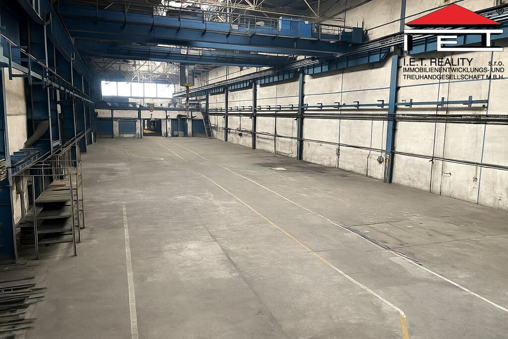 K pronájmu nabízíme výrobní/skladovou halu o ploše 1 992 m² s vlastními vraty 5 × 5 m, dvěma mostovými jeřáby (12,5 t a 5 t) a třemi sloupovými jeřáby. Hala má nosnost podlahy 7 000 kg/m², výšku jeřábů 11 m a je možné ji vytápět.