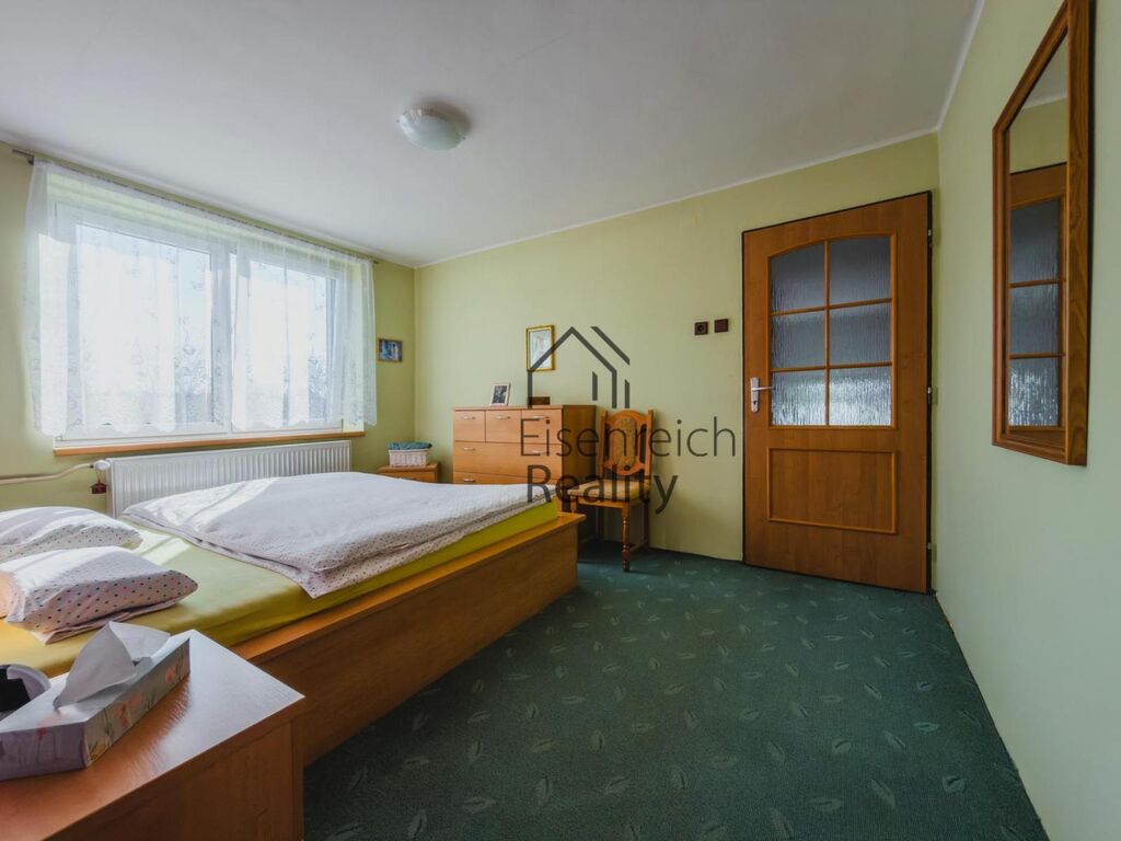 V patře jsou umístěny další dva pokoje a půda o ploše cca 40 m, která nabízí možnost vestavby další obytné části.