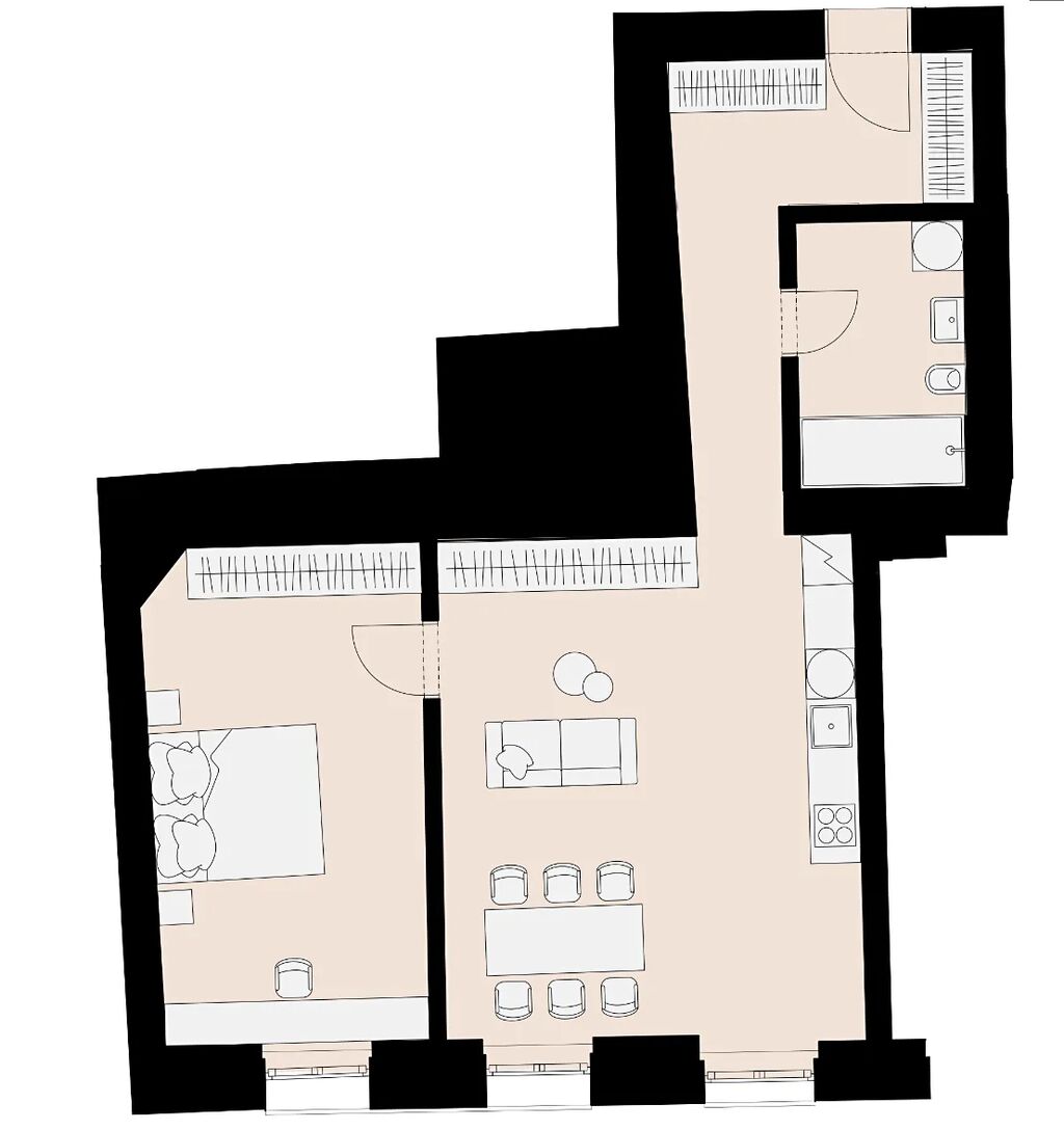Byt nabízí užitnou plochu 61 m² (velké stropy a velmi vzdušný byt), což poskytuje dostatek prostoru pro pohodlné bydlení jednotlivce nebo páru. Díky provedené rekonstrukci je v bytě k dispozici moderní vybavení a kvalitní materiály, které zajišťují komfort a příjemnou atmosféru. Elegantní interiér a dokonalé využití prostoru dělají z tohoto bytu ideální místo pro život v hlavním městě.