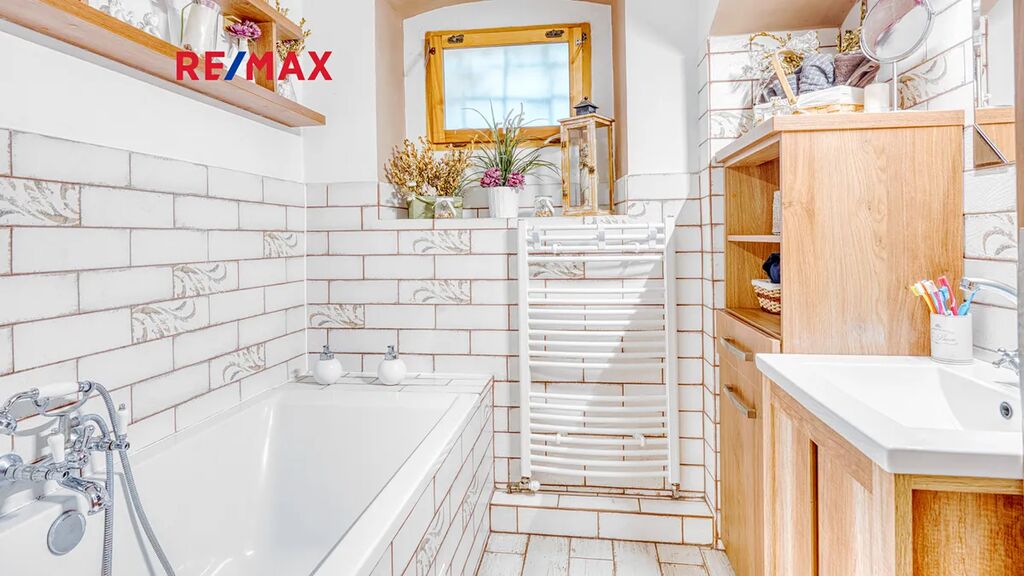 Dům prošel rozsáhlou rekonstrukcí a na udržované zahradě o rozloze 2 299 m² se nachází bazén se slanou vodou, wellness domek se saunou a horkým sudem, dětské hřiště a pergola pro odpočinek.