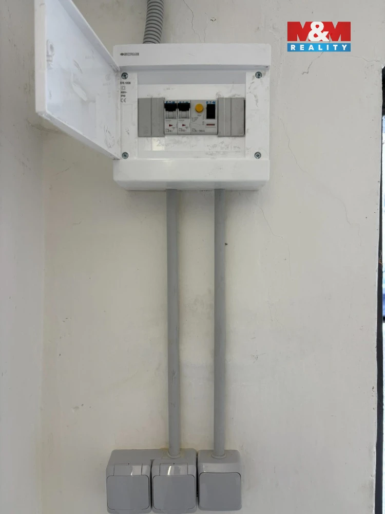 kompletně nová elektroinstalace vč. nových rozvodů, světel, zásuvek, jističů a chrániče, vlastní el. přípojka.