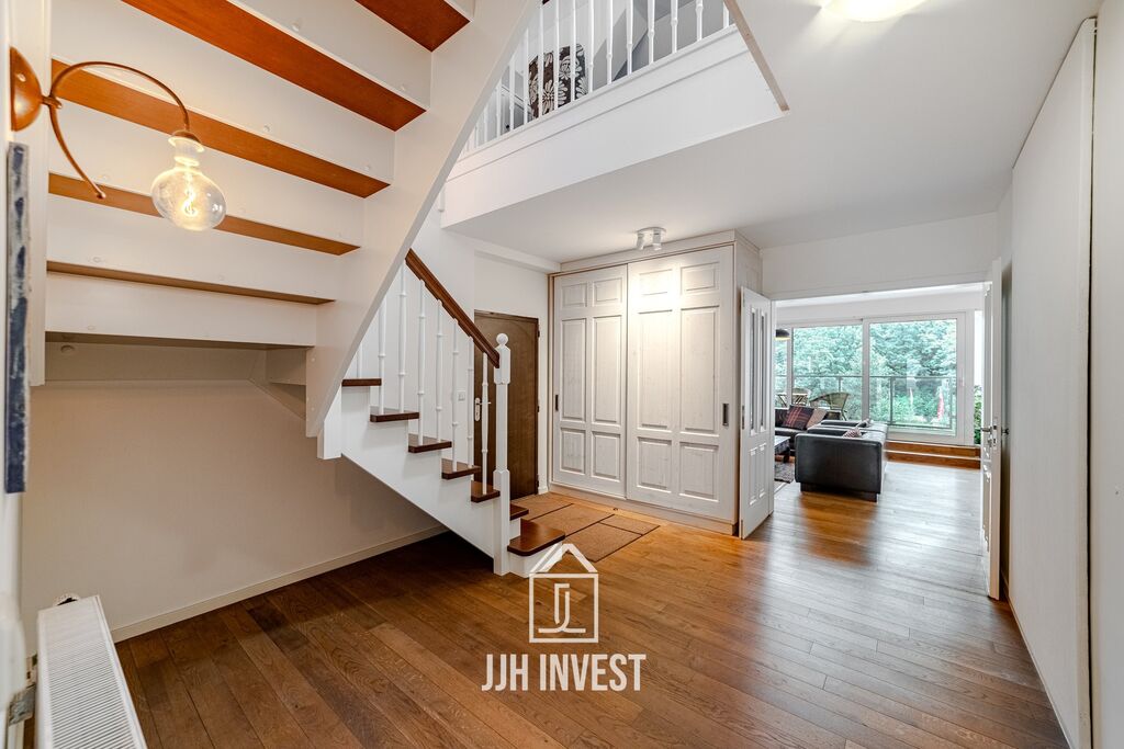 V horním patře jsou umístěny dvě ložnice, druhá koupelna, praktická kuchyňka a otevřený kout vhodný pro home office, dětský herní prostor nebo relaxační zónu. Součástí vybavení je také sauna, která zpříjemní zimní dny a dodá bytu jedinečný charakter. Interiér je laděn do nadčasových tónů a doplněn o vestavný nábytek na míru i klimatizaci.