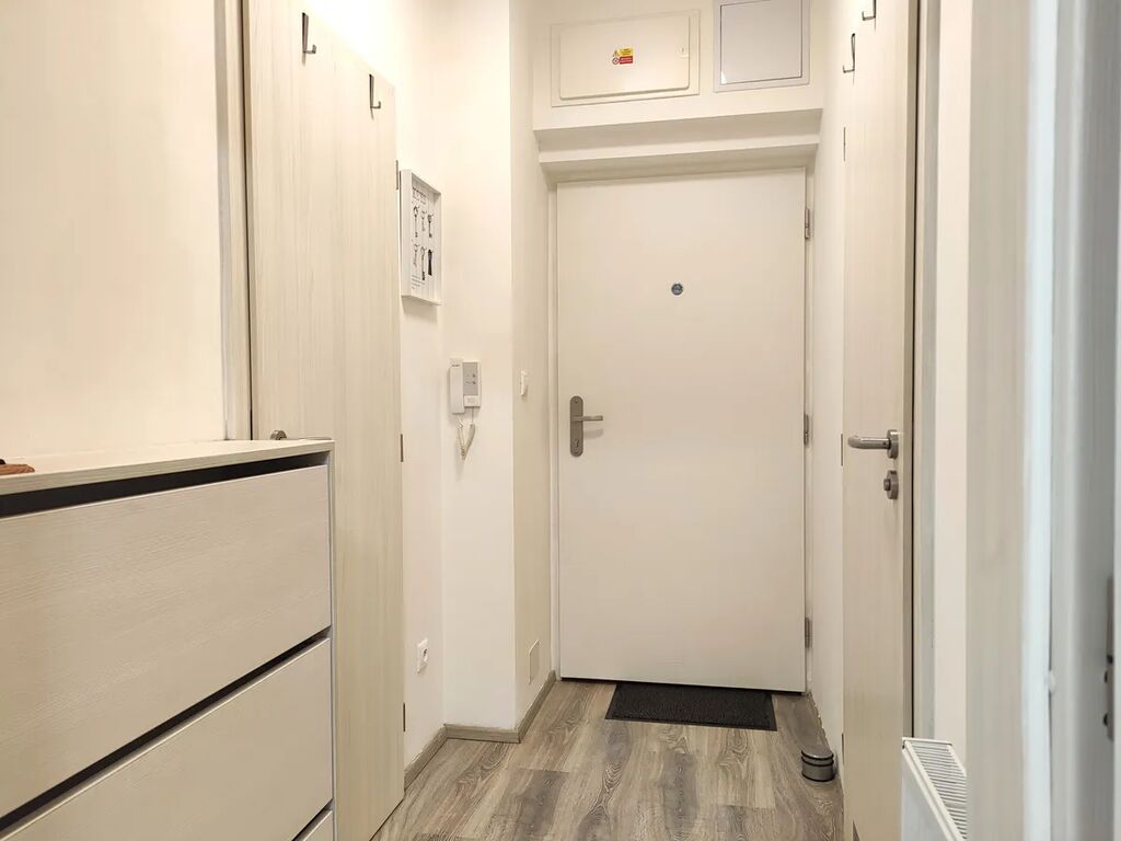 Nabízíme moderní a nadstandardní byt 1+kk s balkonem a garáží v bytovém domě Rumiště u areálu Nová Vlněná, v blízkosti středu Brna.
