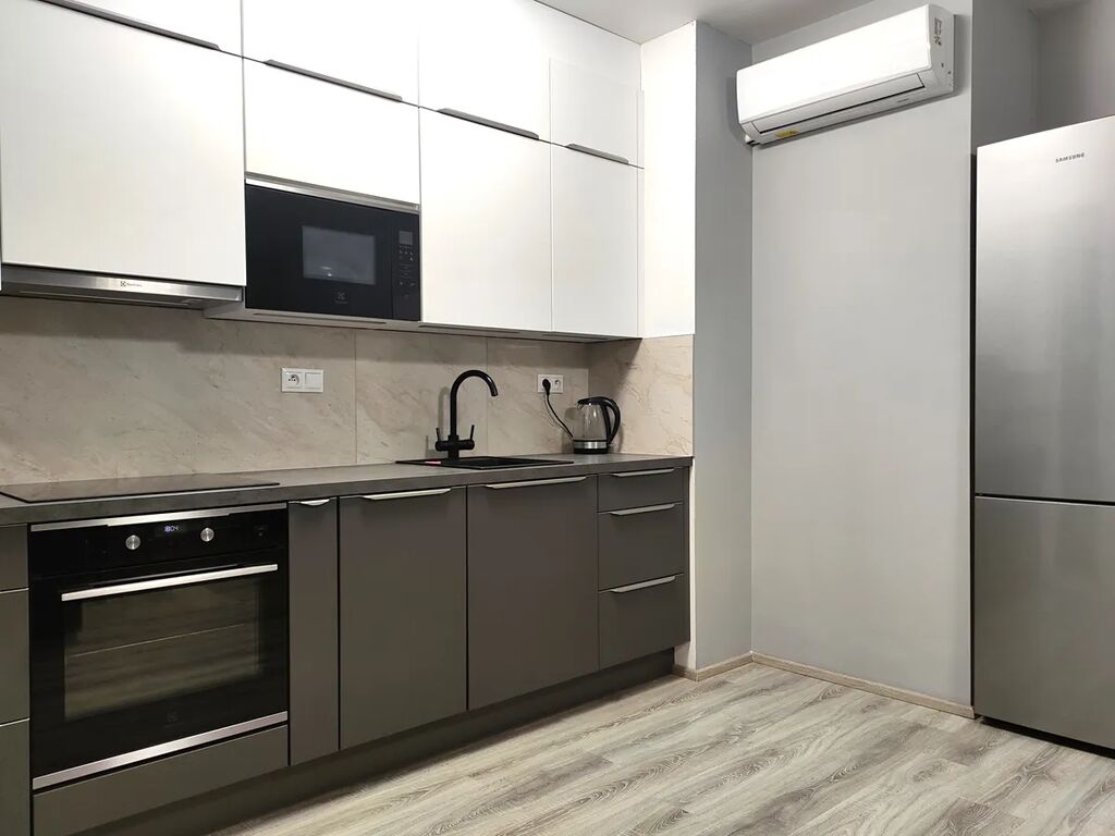 • Moderní kuchyňská linka: lednice, indukční deska, digestoř, vestavěná mikrovlnná a elektrická trouba, myčka, stůl a židle