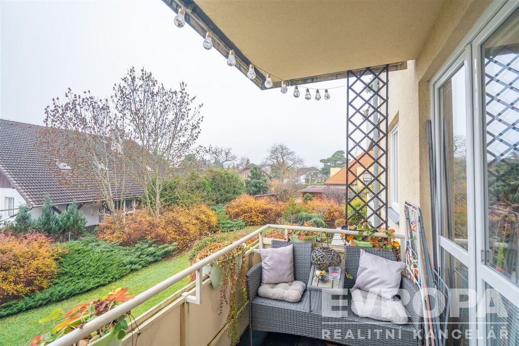 Součástí bytu je balkon (3 m²) s příjemným výhledem do zeleně a sklepní kóje (3 m²), která poskytuje dostatek úložného prostoru.