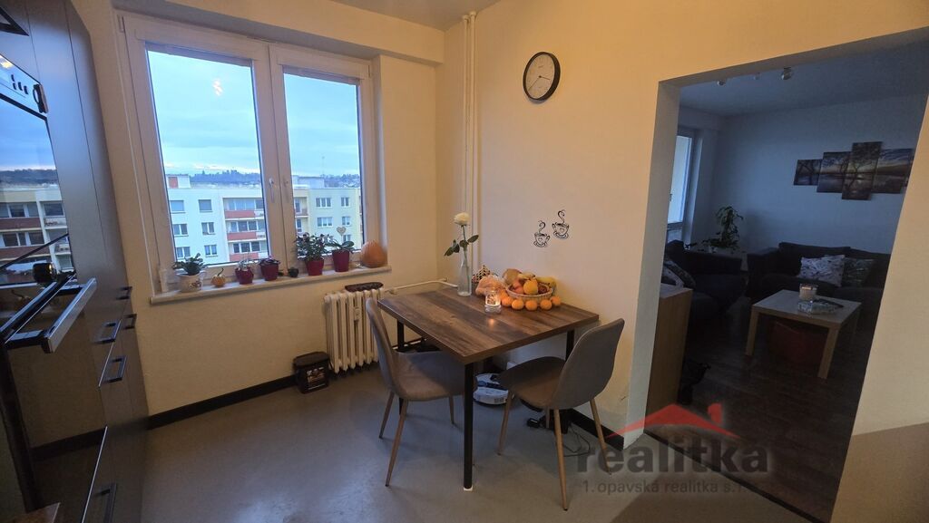 Nabízíme pronájem hezkého, velkého bytu 3+1, 72m2 v Opavě na ul. Bílovecká. Byt se nachází v 7. patře panelového domu s výtahem. Byt je po rekonstrukci. Je zde prostorná, moderní kuchyň včetně spotřebičů - elektrická trouba, digestoř, myčka, lednice s mrazákem, mikrovlnka, plynová deska. Z obývacího pokoje je vstup na velkou lodžii. Z předsíně se vchází do dalších 2 samostatných pokojů. Je zde také komora s regály a zabudovaná skříň na boty. Koupelna je krásná, je zde umyvadlo se skříňkou, sprchový kout, wc a napojení na pračku a sušičku. K bytu náleží sklepní kóje a kolárna. V blízkosti je MHD, obchod, škola, školka, restaurace. Nájem je stanoven na 16000,-kč, služby 3800,-kč + elektřina a plyn na vaření. Kauce je 32000,-kč, provize rk 16000,-kč. Zájemci o prohlídku dle domluvy s paní Gratzovou.