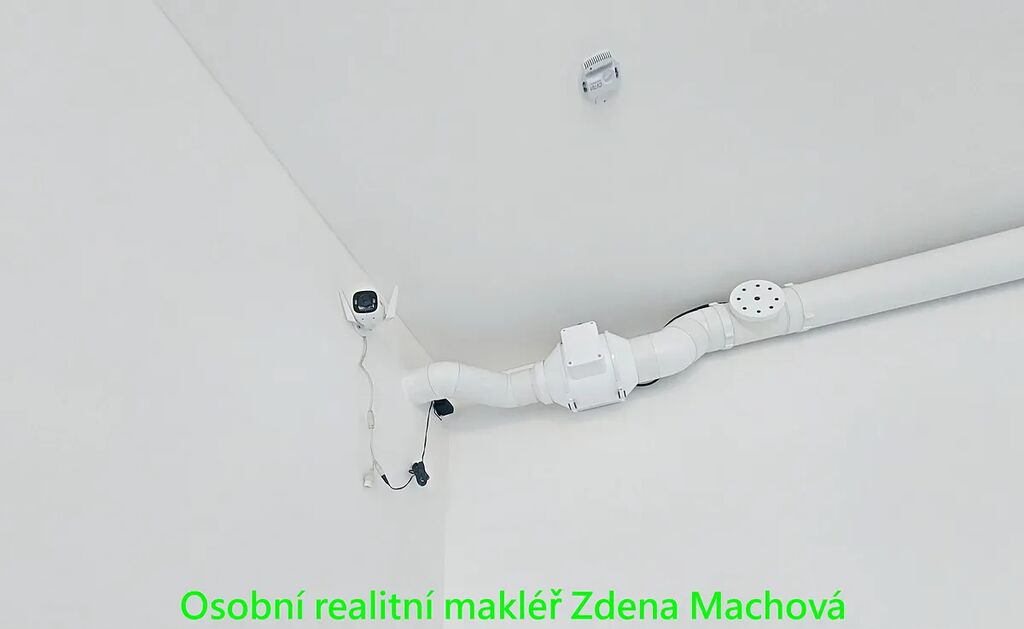 Prostor je vybaven měřičem vlhkosti, ventilací a infrapanelem napojeným na levný proud, což zajišťuje optimální podmínky uvnitř. K dispozici jsou zásuvky na 230 i 400 V, klasické osvětlení na vypínač i senzorové LED světlo zabudované v podhledu. Garáž je navíc chráněna kamerovým systémem a nabízí moderní možnosti ovládání lze spínat přes aplikaci, vjezdová vrata mají vlastní dálkový ovladač a brána se dá pohodlně otevírat i prostřednictvím telefonního čísla.