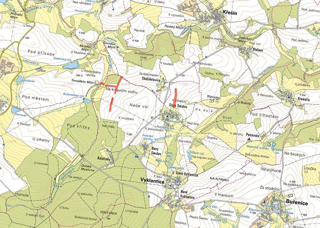 Čísla parcel: 458/12, 460, 461, 535/8, 535/26, 539/4, 574, 576, 640/3, 1140/51 a 1881/7.
