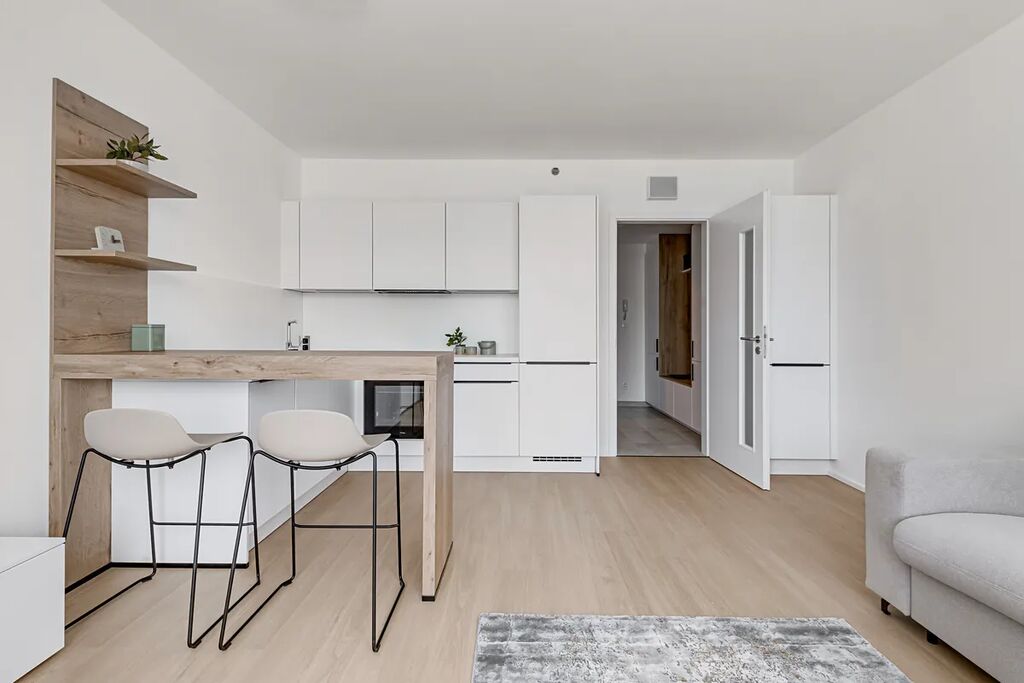 Nabízíme k dlouhodobému užívaní moderně a stylově vybavený apartmán o dispozici 1+kk/balkón v projektu AFI Home Kolbenova 1. Apartmán je plně vybavený, nábytek na míru nabízí dostatek úložného prostoru. Součástí domu je recepce s ostrahou.