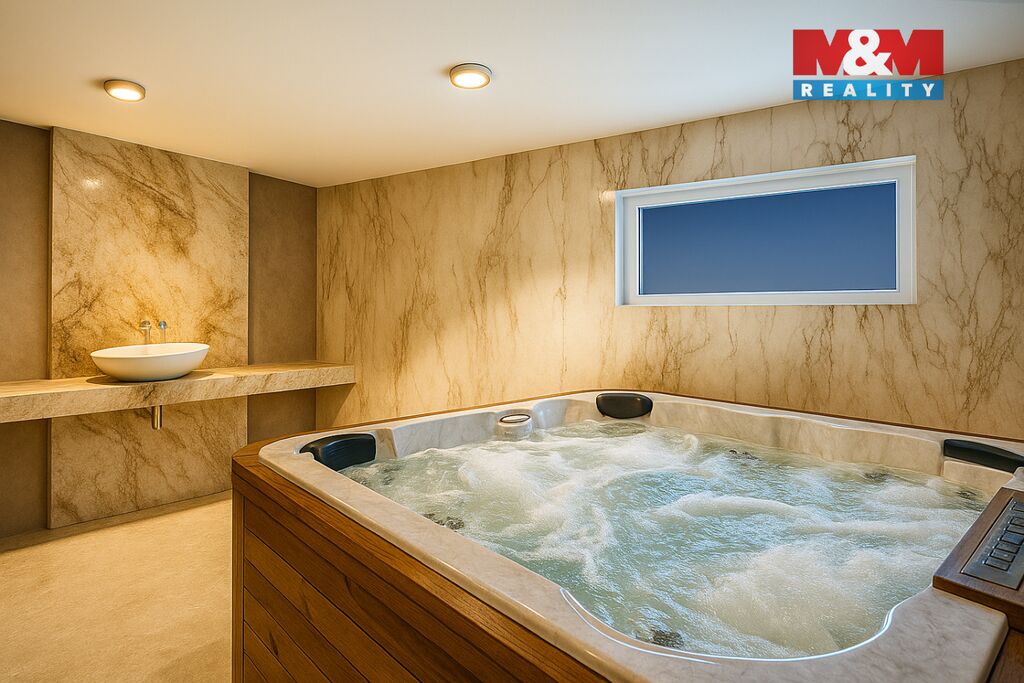 Suterén domu dává prostor k vybudování rodinného wellness. Okna a dveře plastová, žaluzie a síťky proti hmyzu. Fasáda domu břizolitová.