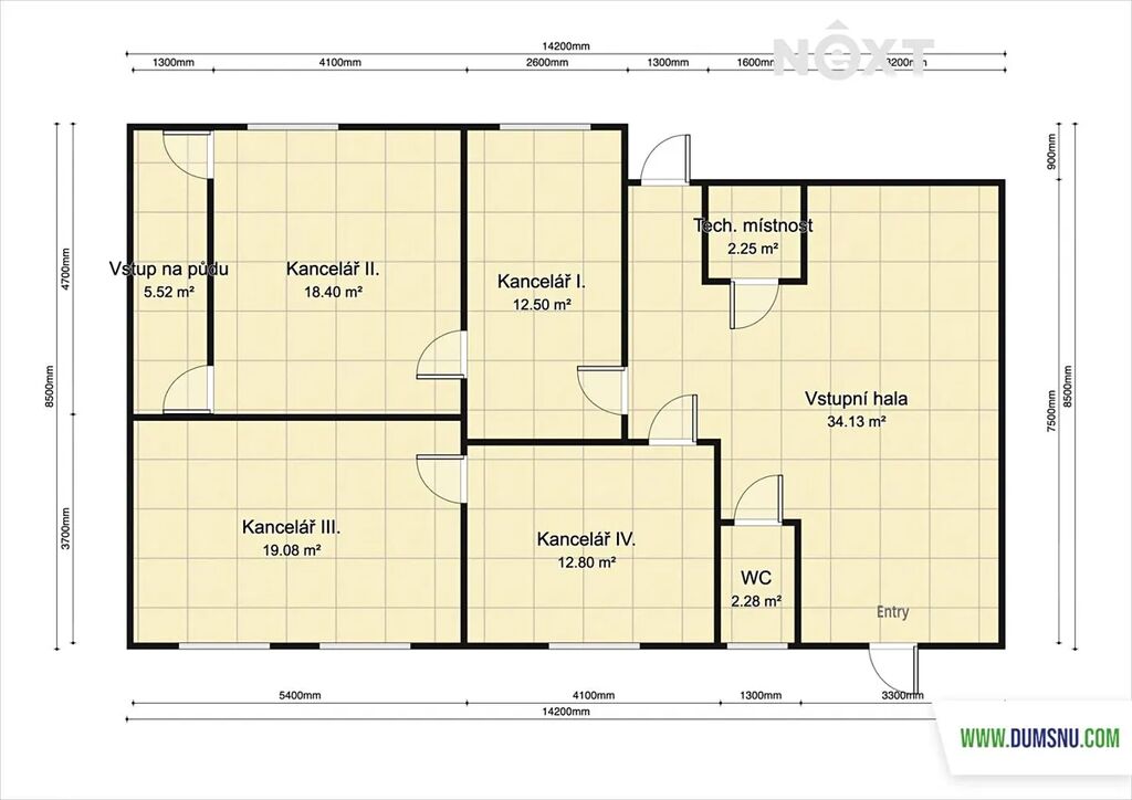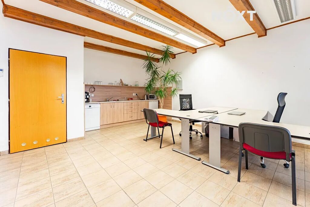 Prostory jsou umístěny v oploceném areálu s přístupem z obou stran budovy. Dispozici tvoří hlavní místnost s kuchyňským koutem a sociálním zázemím, ze které se vstupuje do dvou samostatných kanceláří, a z každé z nich dále do další místnosti. Vše je řešeno prakticky a s bezbariérovým přístupem.