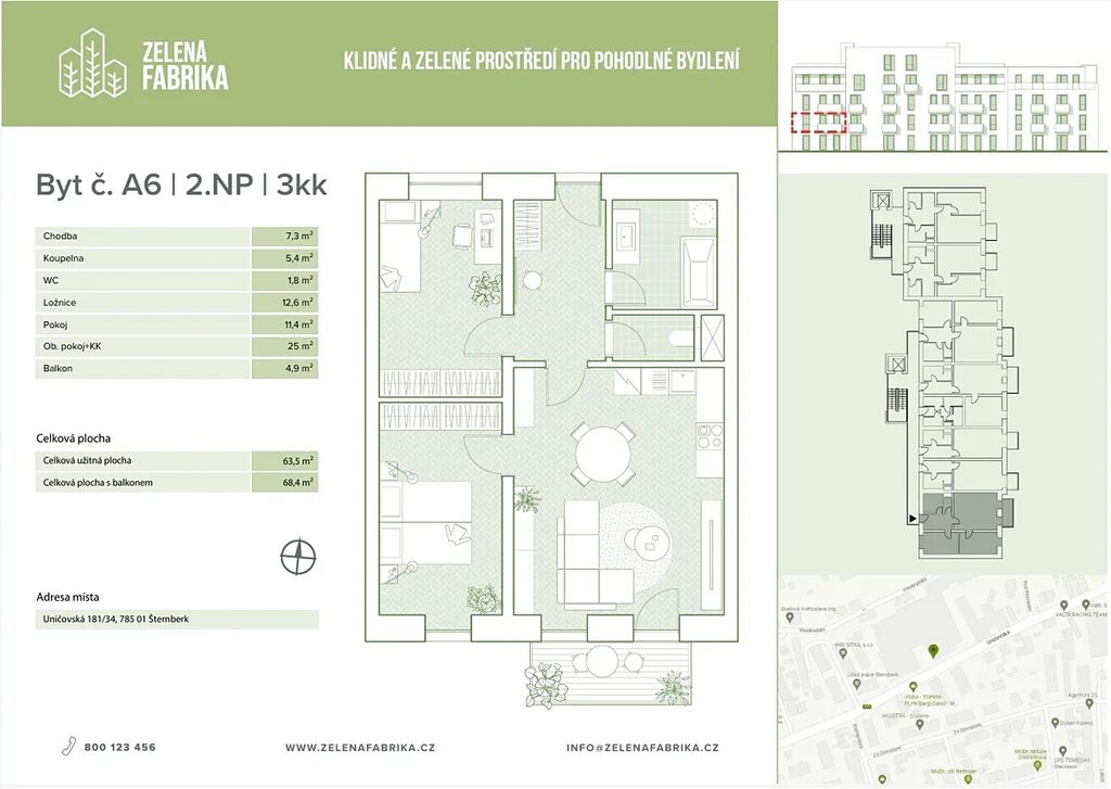 Nabízíme byt 3+kk o užitné ploše 64 m² s balkonem 5 m² ve 2. patře (byt A6) v rámci 3. etapy projektu Zelená Fabrika ve Šternberku.