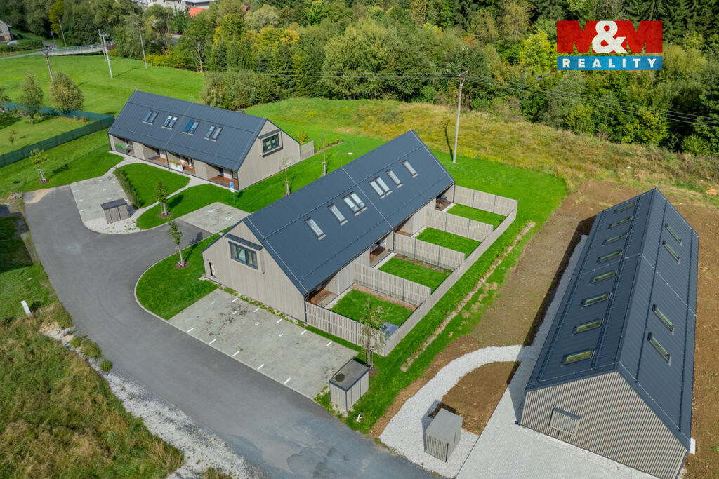 Nabízíme k prodeji mezonetový apartmán kolaudovaný v roce 2024, evokující bydlení v řadovém, malém rodinném domku se zahrádkou. V prvním nadzemním podlaží se nachází vstupní chodba, WC a obývací místnost s kuchyní, na kterou navazují z obou stran dřevěné terasy a malá zahrada. V podkroví se nachází koupelna a dva menší pokoje. Všechny pokoje jsou vybaveny vestavěným nábytkem na míru. K bytu náleží vlastní parkovací místo. Ohřev vody elektrickým bojlerem, vytápění tepelným čerpadlem pro celý dům, ve kterém jsou celkem 4 bytové jednotky. Dům je napojen na veřejný vodovod a kanalizaci. Vynikající pro toho, kdo hledá moderní, klidné bydlení uprostřed valašské přírody. Ideální využití i k rekreaci. Vzhledem k fixaci hypotéky možnost převodu a předání v květnu 2026. Pro více informací kontaktujte makléře.