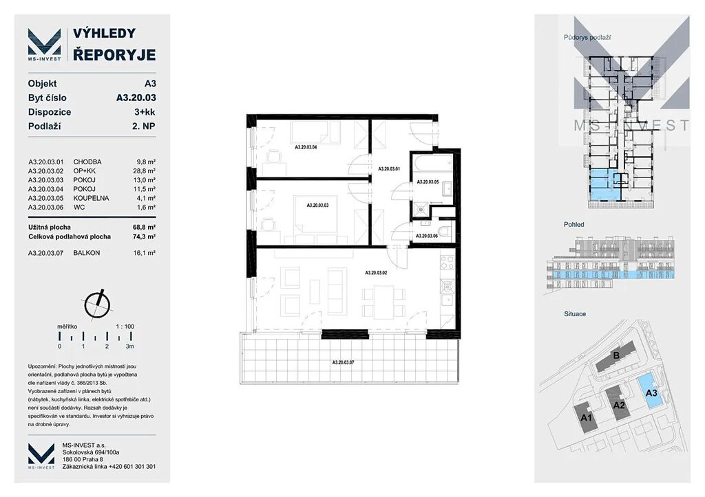 K prodeji nabízíme rodinný byt 3+kk s balkonem na jih. V ceně bytu je již zahrnut prostorný sklep a venkovní žaluzie.