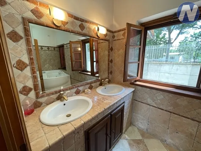 Kolem domu se rozprostírá velkolepý soukromý park o rozloze 9 tis. m2. Celý pozemek je lemován masivními zdmi obloženými elegantním šedým kamenem, vjezd je zajištěn elektrickou bránou. Pečlivě udržovaný borový háj Vám v parném létě poskytne dostatek stínu. Na zděném grilu za domem můžete připravovat místní delikatesy. Na zahradě je připravený prostor pro výstavbu velkého bazénu. Jsou zde také tři nové studny pro zalévání zeleně.