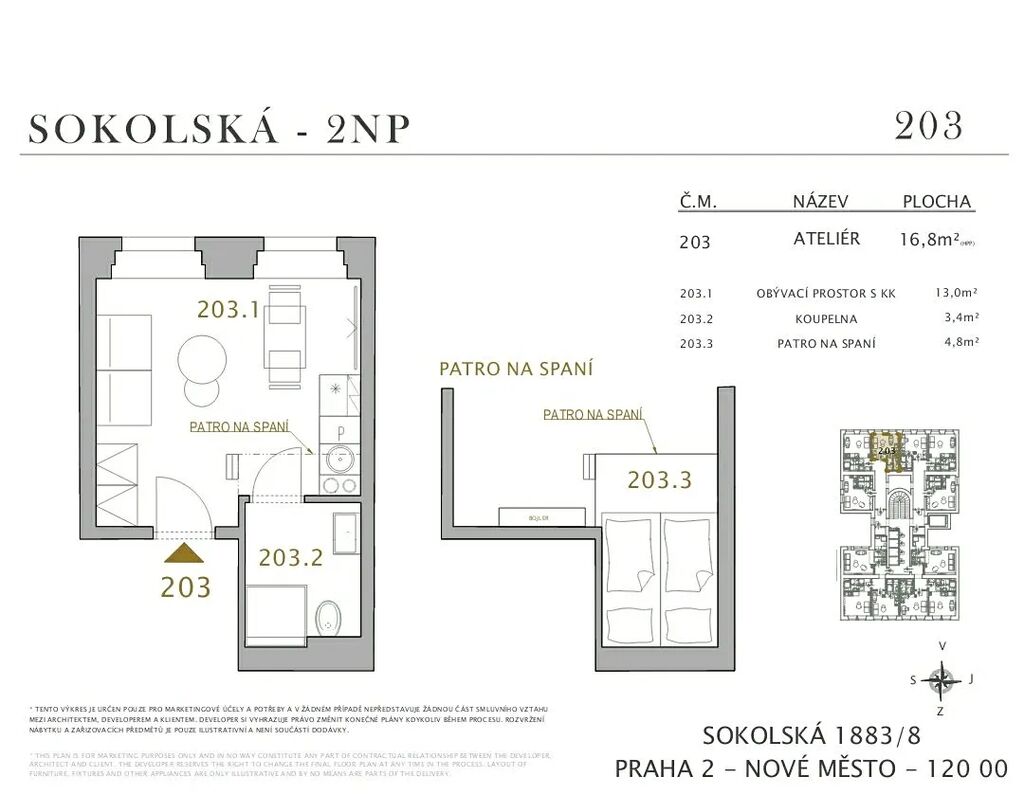 - patro na spaní s místem pro dvojlůžko,