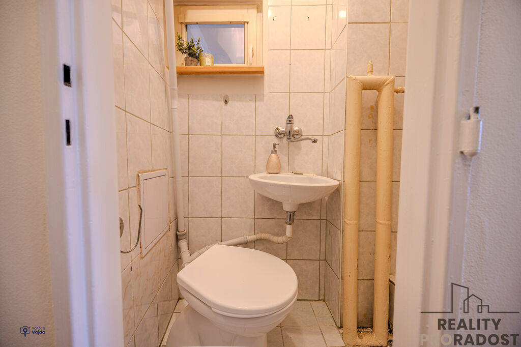 Koupelna včetně WC je k rekonstrukci dle fotek je vidět a můžu to potvrdit, že prostory jsou opravdu stísněné.