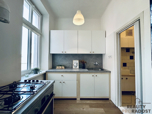 Byt disponuje novou kuchyní vybavenou kuchyňskou linkou, plynovým sporákem a troubou. Obývací pokoj nabízí dostatek prostoru pro pohodlnou sedací soupravu, konferenční stolek, TV i pracovní kout. Dále zde naleznete velký pokoj a prostornou ložnici, které poskytují dostatek soukromí a možnost variability uspořádání.