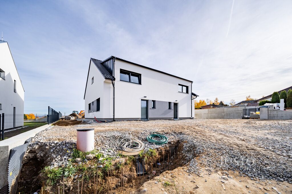 Dispozice 5+kk s užitnou plochou 121 m² nabízí velkorysý prostor, který si zamilujete hned při první prohlídce. Součástí každé jednotky je navíc vlastní zahrada o výměře cca 282 m², dvě parkovací stání, terasa, vlastní tepelné čerpadlo značky Panasonic, nezámrzný venkovní kohout na vodu, příprava na venkovní žaluzie (bez lamel), hotový plot a mnoho dalšího. Zahrada bude předána srovnaná a s navezenou ornicí, připravená k osetí trávníkem. Praktickým benefitem je také dostatečně široký přístup na pozemek kolem jednotky, včetně hotového chodníku.