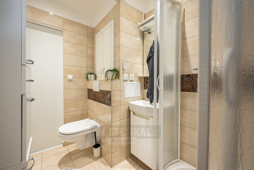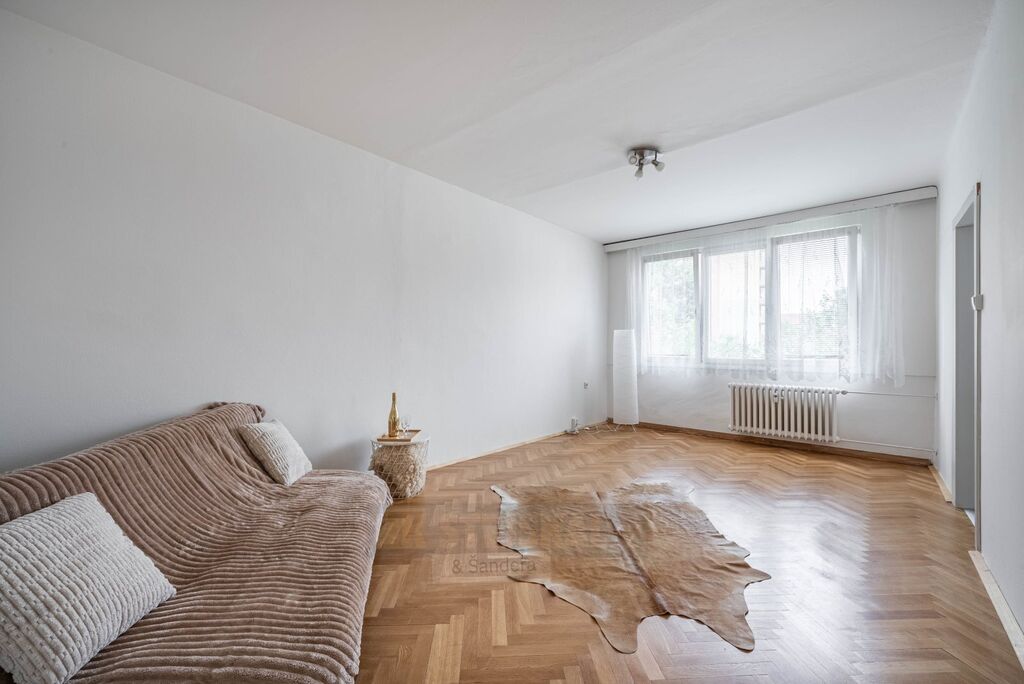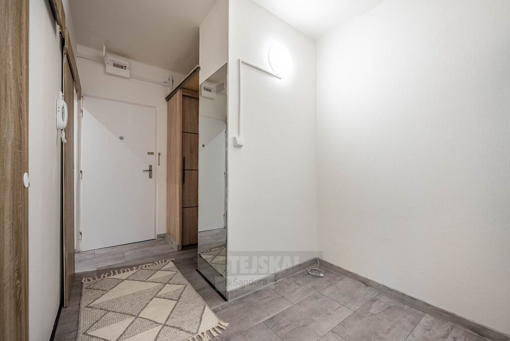 Po vstupu je na levé straně praktická šatna, na pravé pak koupelna se sprchovým koutem a toaletou. Následuje prostorný obývací pokoj, samostatná ložnice a kuchyně. K bytu náleží balkon a sklepní kóje.