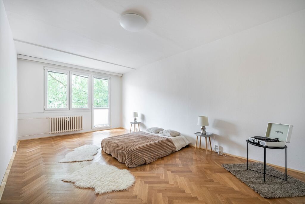 Byt prošel rekonstrukcí –koupelna, kuchyně, elektrorozvody, renovace parket. Nově je vymalováno a jsou zde položeny nové podlahy. Okna jsou do ulice (vč balkónu) i do zahrad a zeleně.
