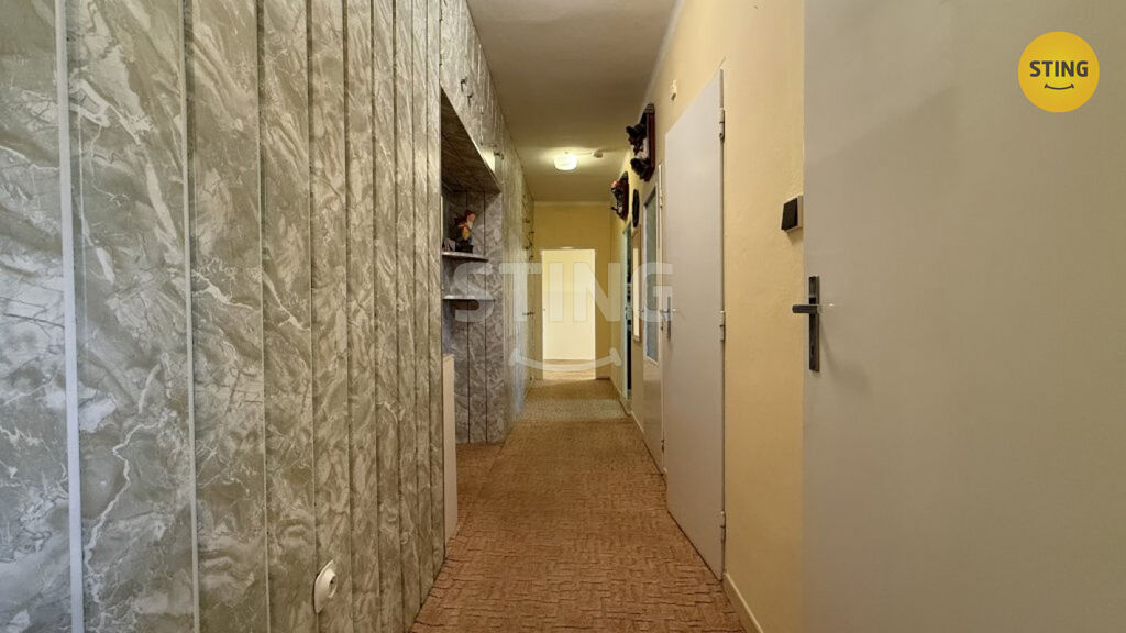 Dispozici bytu tvoří tři samostatné pokoje, kuchyň, koupelna, samostatné WC a prostorná předsíň. K bytu náleží také sklepní kóje.